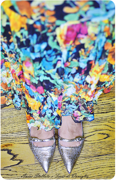 E' un modello con un colore veramente particolare, sono dorate ma il colore non è uniforme, ha un effetto con delle piccole crepe che le rende ancora più originali, il puntale è a punta e sono completamente senza tacco. Da notare il cinturino sopra con la fibbia che le rende ancora più originali e raffinate.